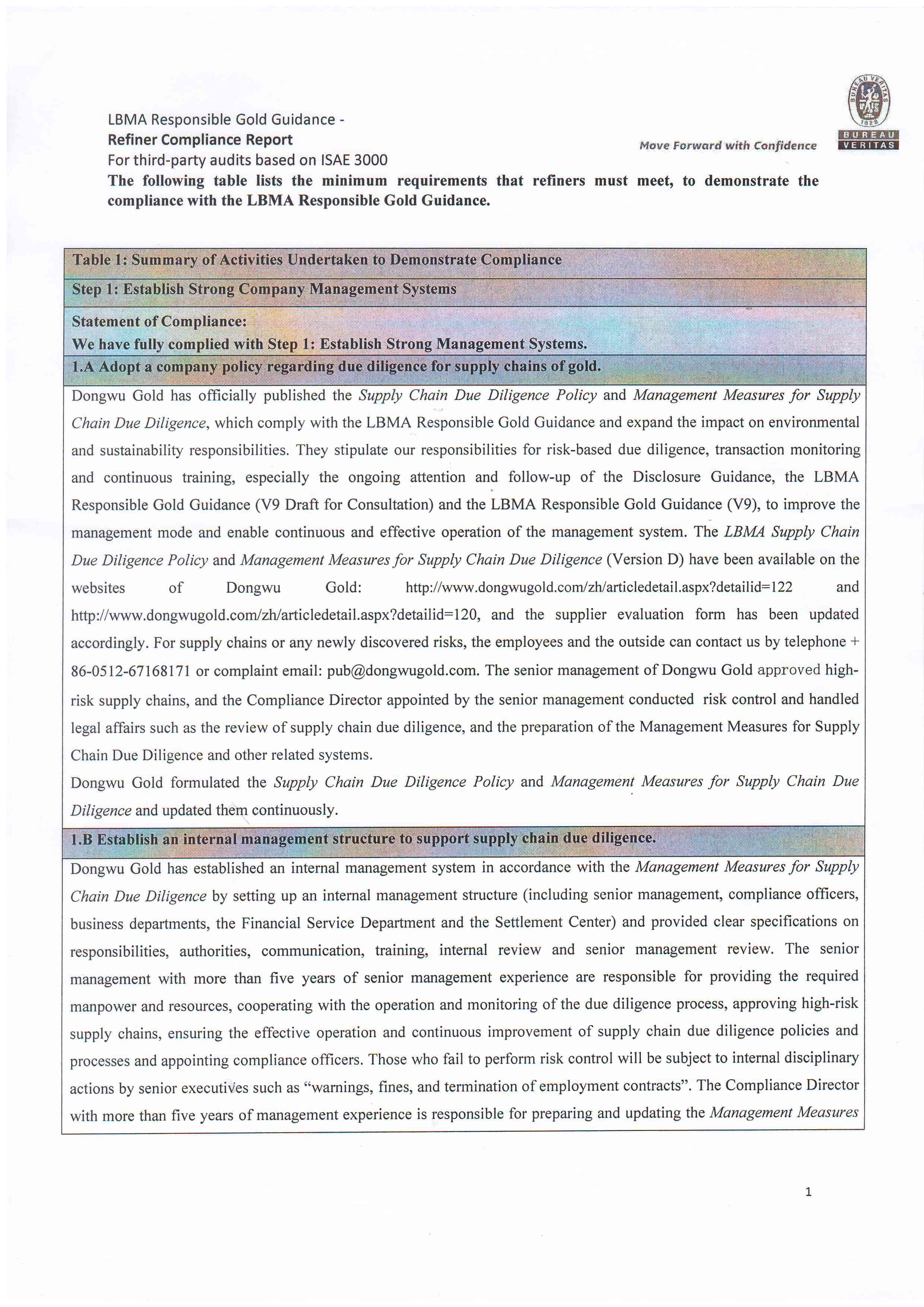 Dongwu Gold Refiner Compliance Report 2021